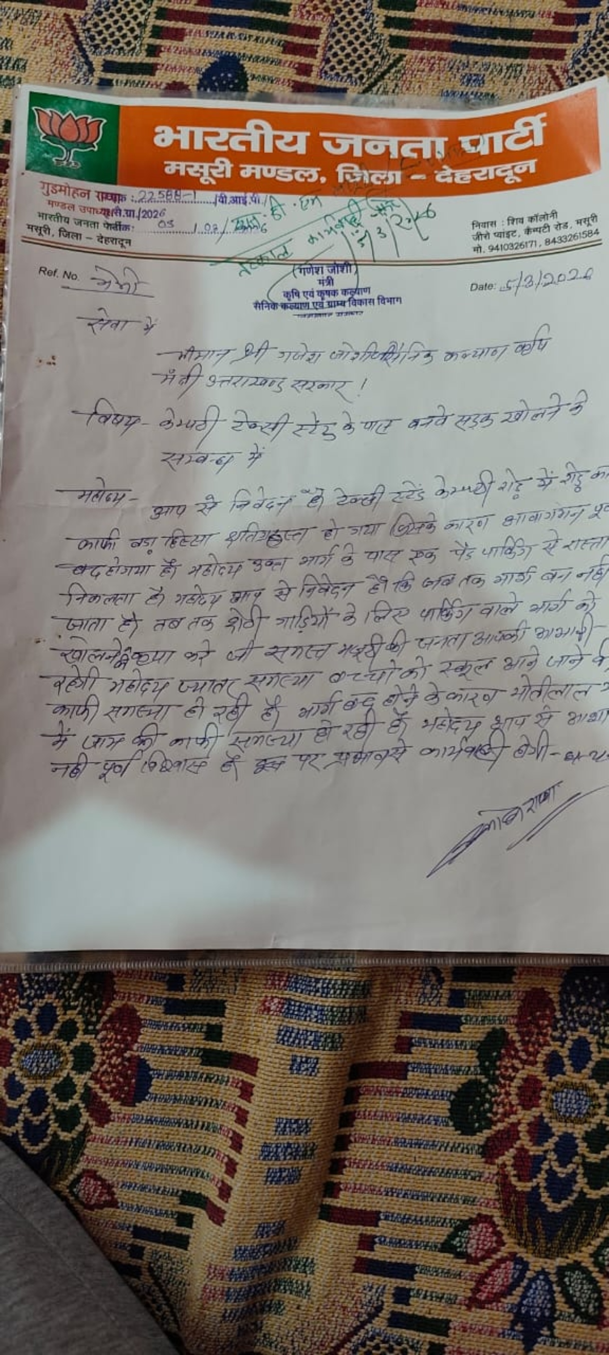केंप्टी टैक्सी स्टेंड के पास नेशनल हाईवे रोड़ का बहुत बड़ा हिसा टूट जाने के कारण स्कूल के बच्चो को और मसूरी के आस पास के लोगो को पर्यटक भी कई घंटे जाम में फंस रहे है मसूरी मण्डल द्वारा इस समस्या से निजात दिलाने के लिए माननीय कविना मंत्री श्री गणेश जोशी को ज्ञापन दिया माननीय मंत्री जी द्वारा तत्काल s d m मसूरी और अधिशासी अधिकारी नगर पालिका को समस्या का निस्तारण करने का आदेश दिया बहुत बहुत धन्यवाद आभार माननीय मंत्री जी का l
